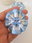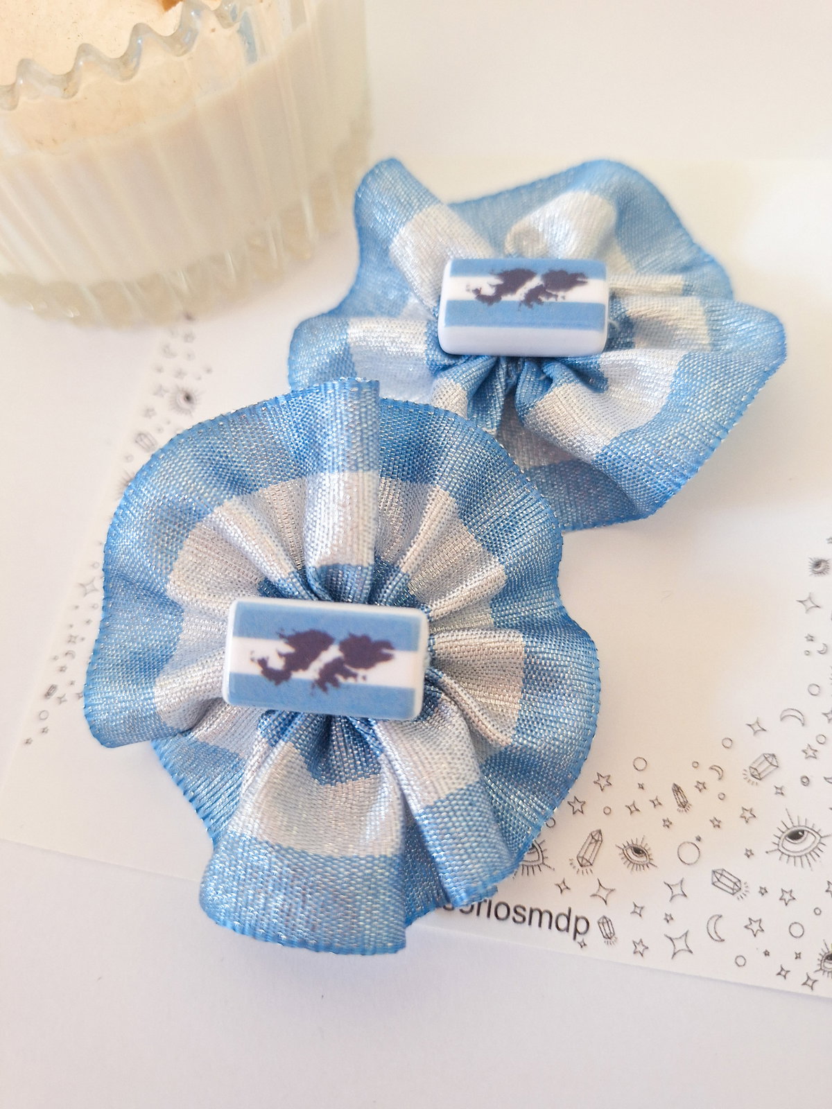 Escarapela realizada con cinta argentina con brillo y dije de cerámica.