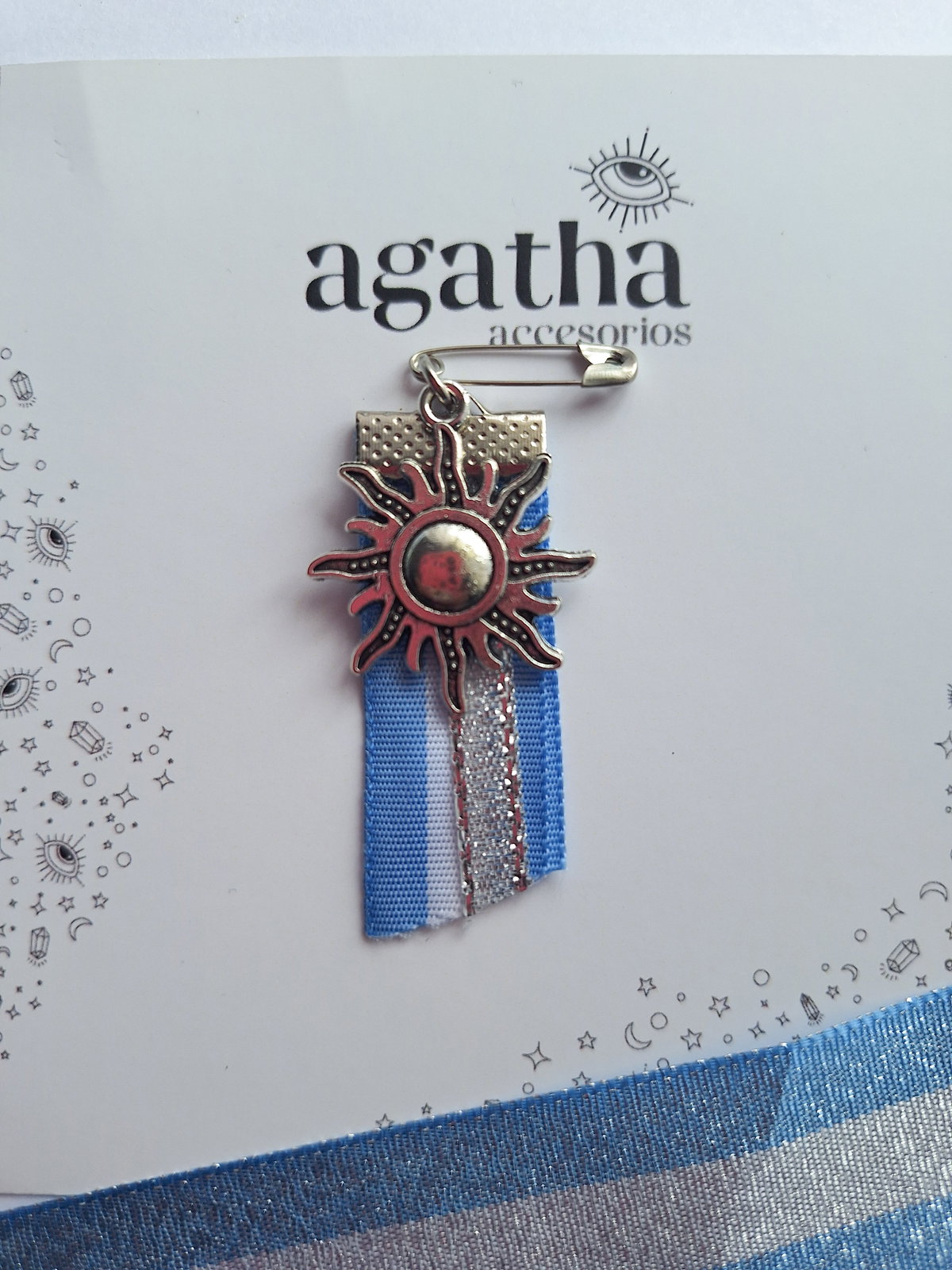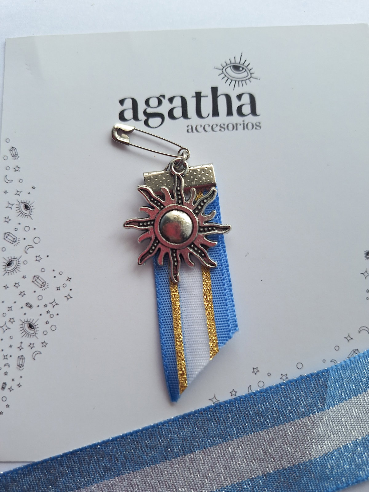 Escarapela realizada con cintas y dije de fundición.