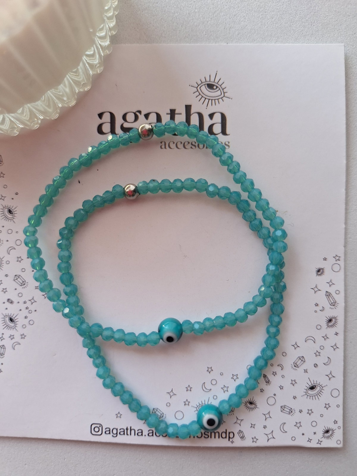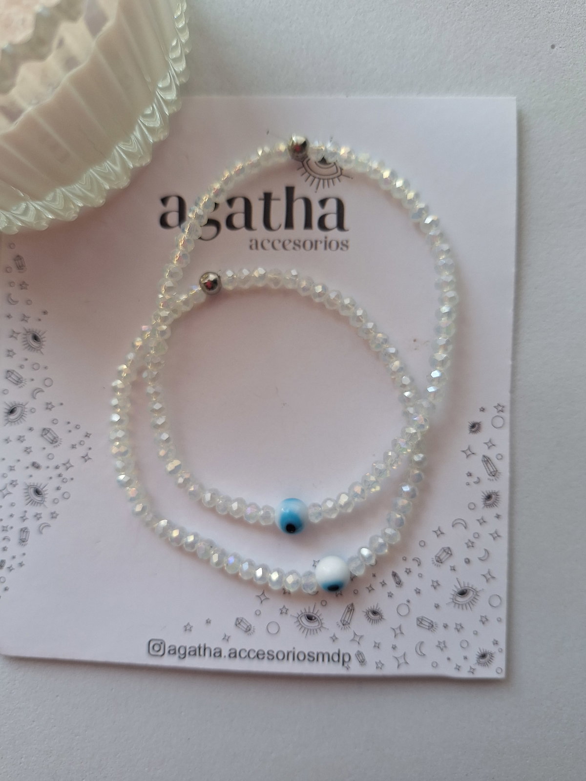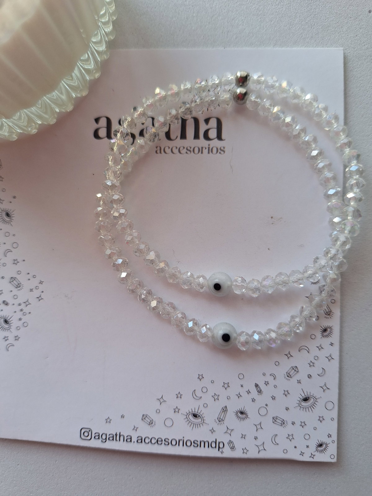 - Pulsera realizada con cristales y Ojito turco de vidrio. Elastizada.