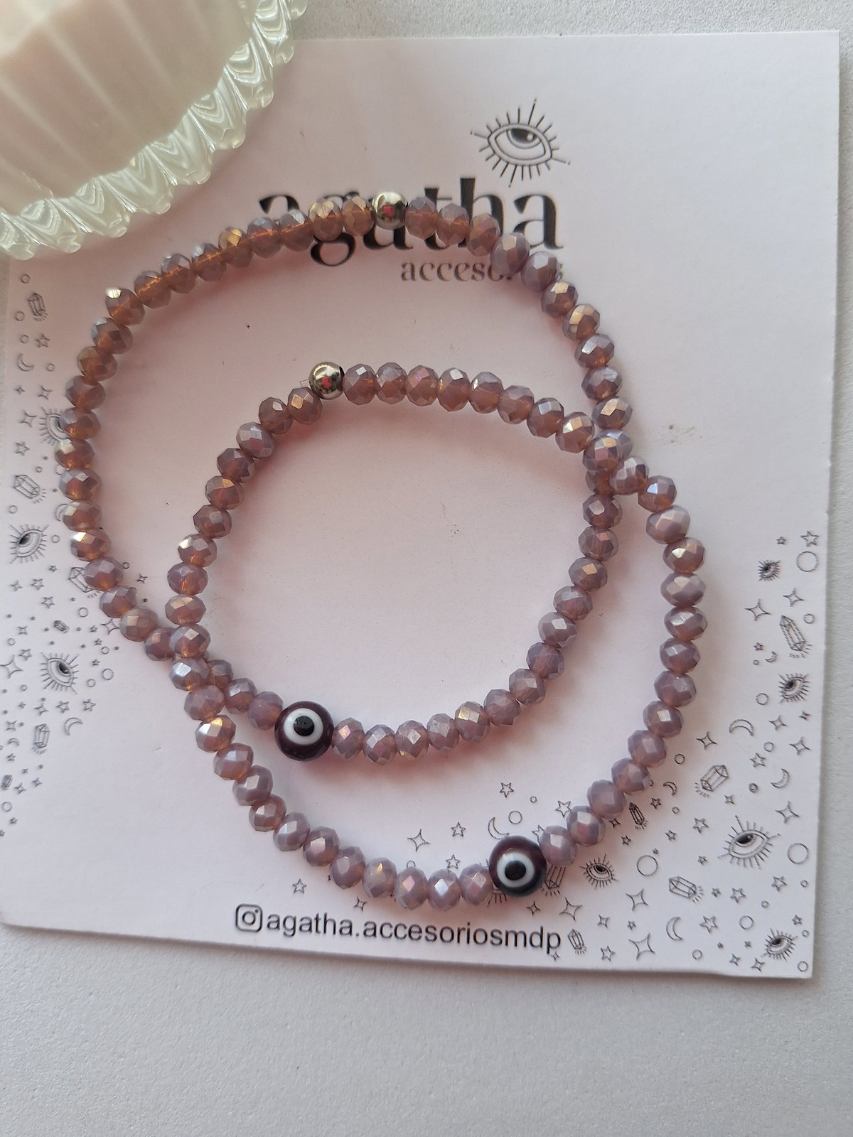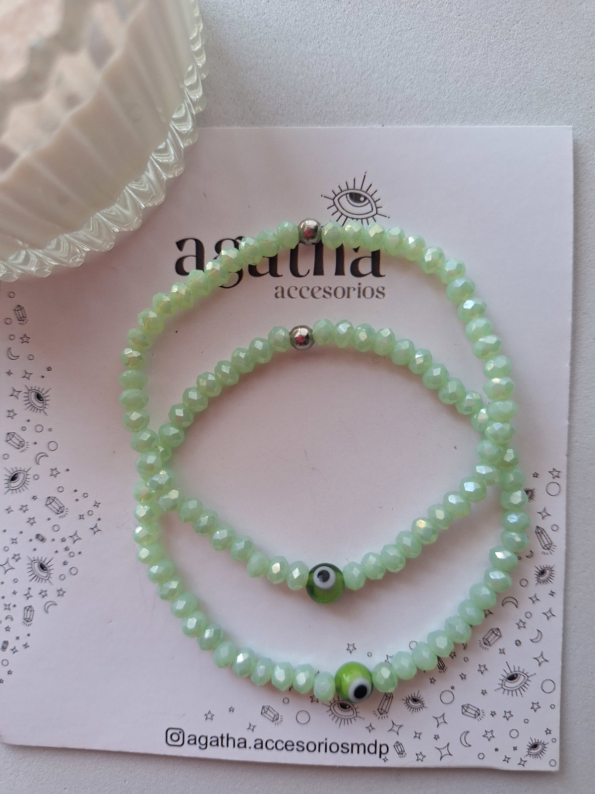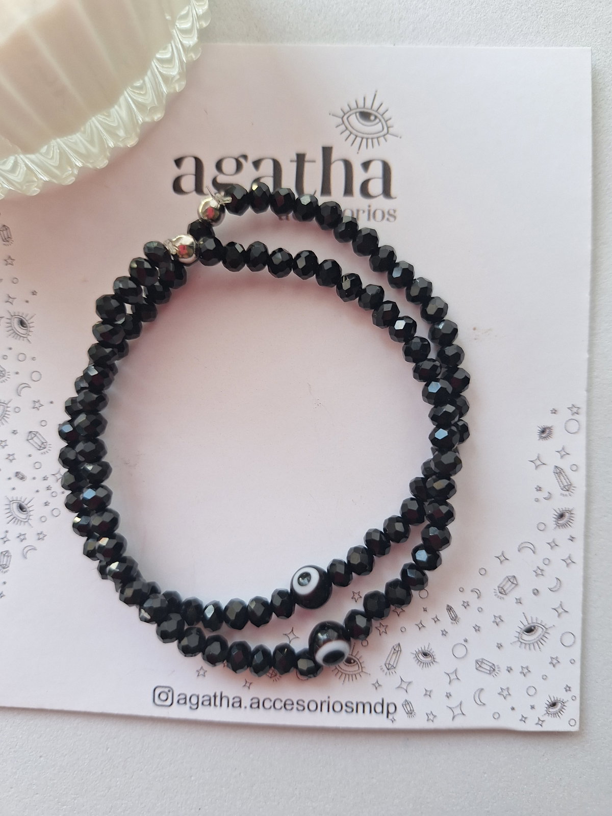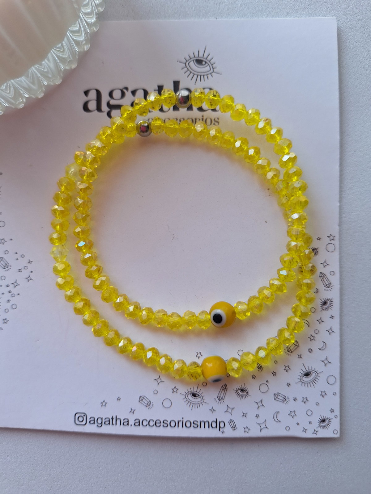 - Pulsera realizada con cristales y Ojito turco de vidrio. Elastizada.