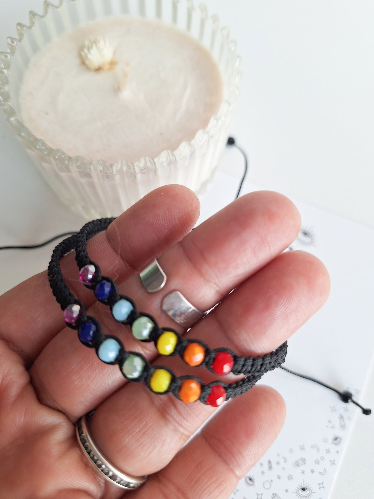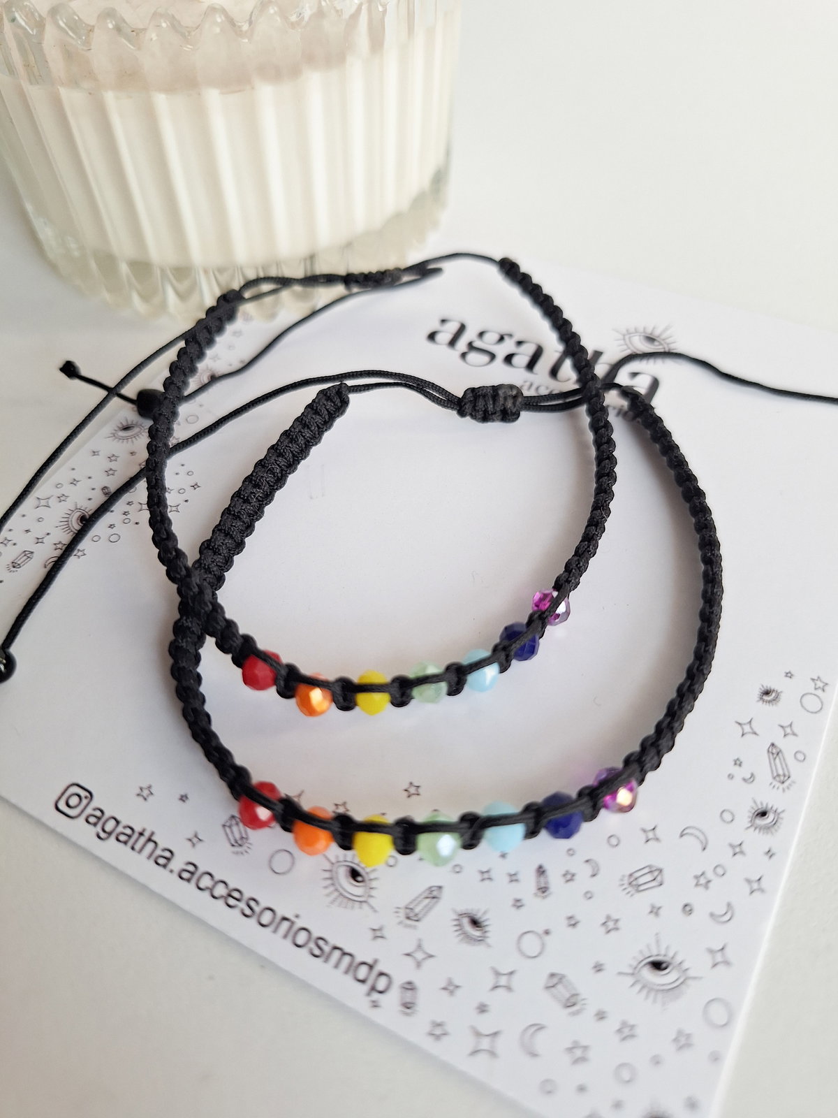 Pulsera realizada con hilo chino tejidas macramé, con cristales de 4 mm. Cierre regulable.