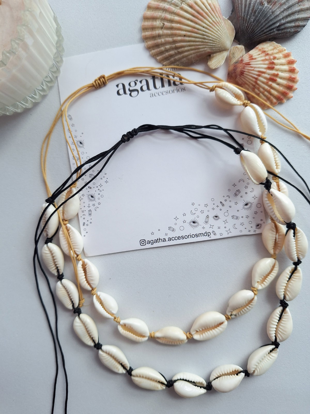 Chocker realizado con caracoles buzios naturales e hilo chino. Cierre regulable.