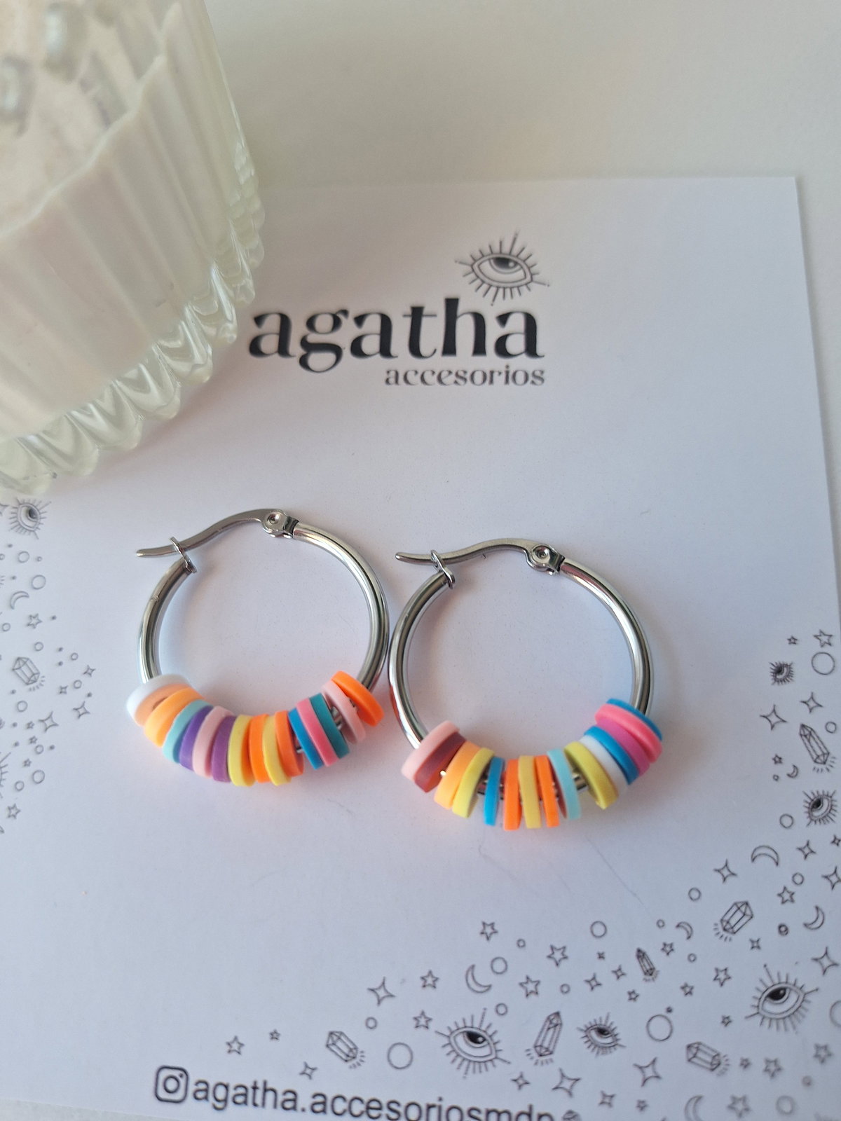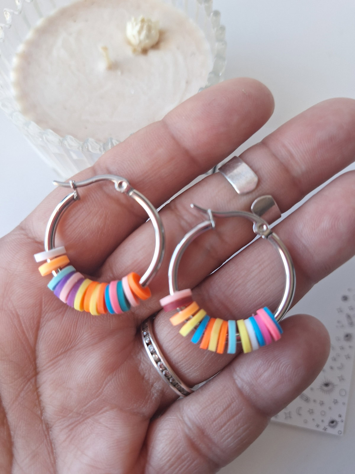 Aros de acero quirúrgico con fimo de colores.