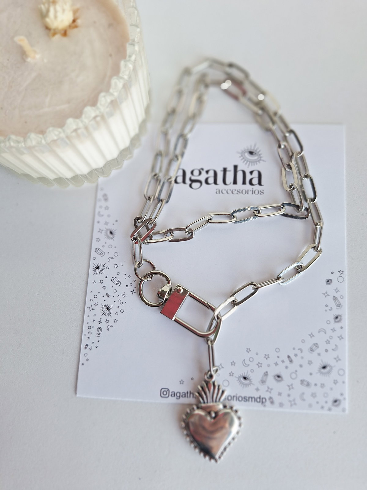 Collar realizado con cadena de hierro y cierre regulable.