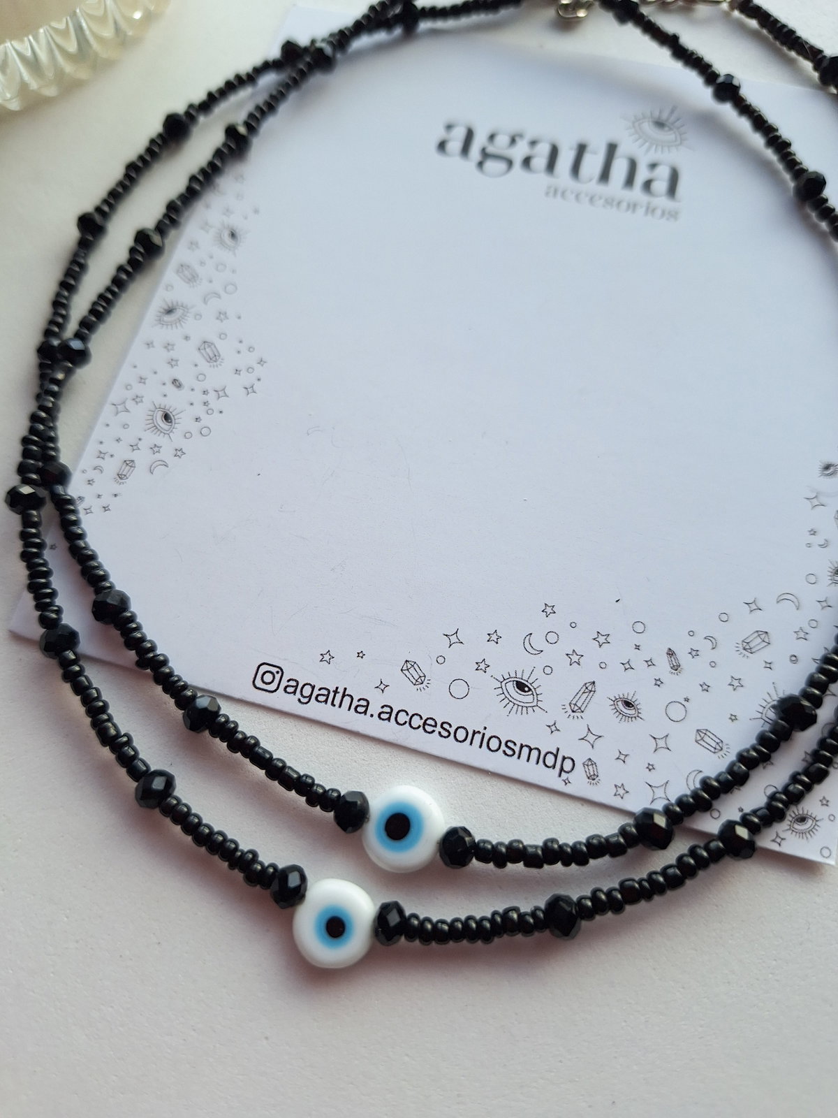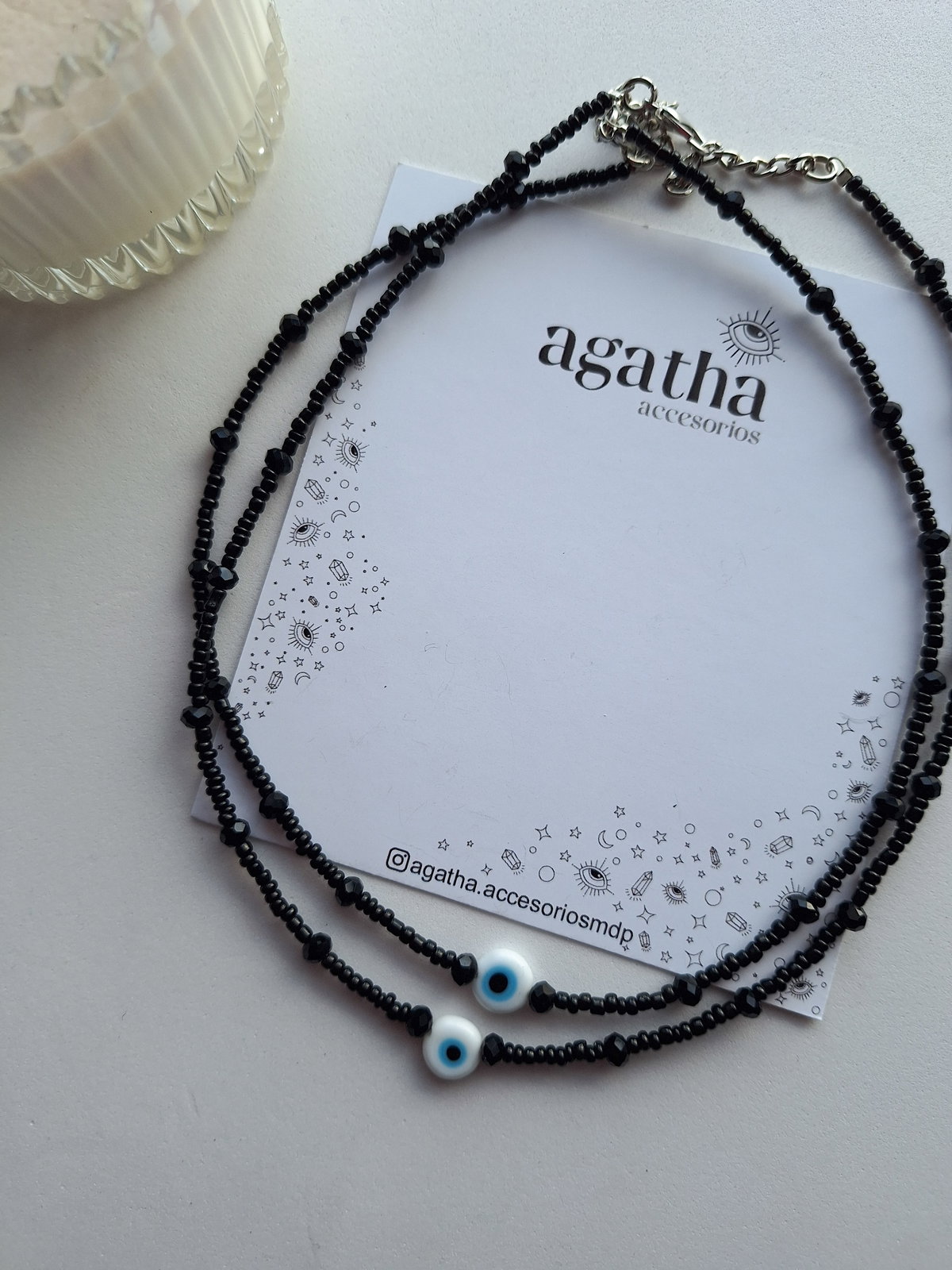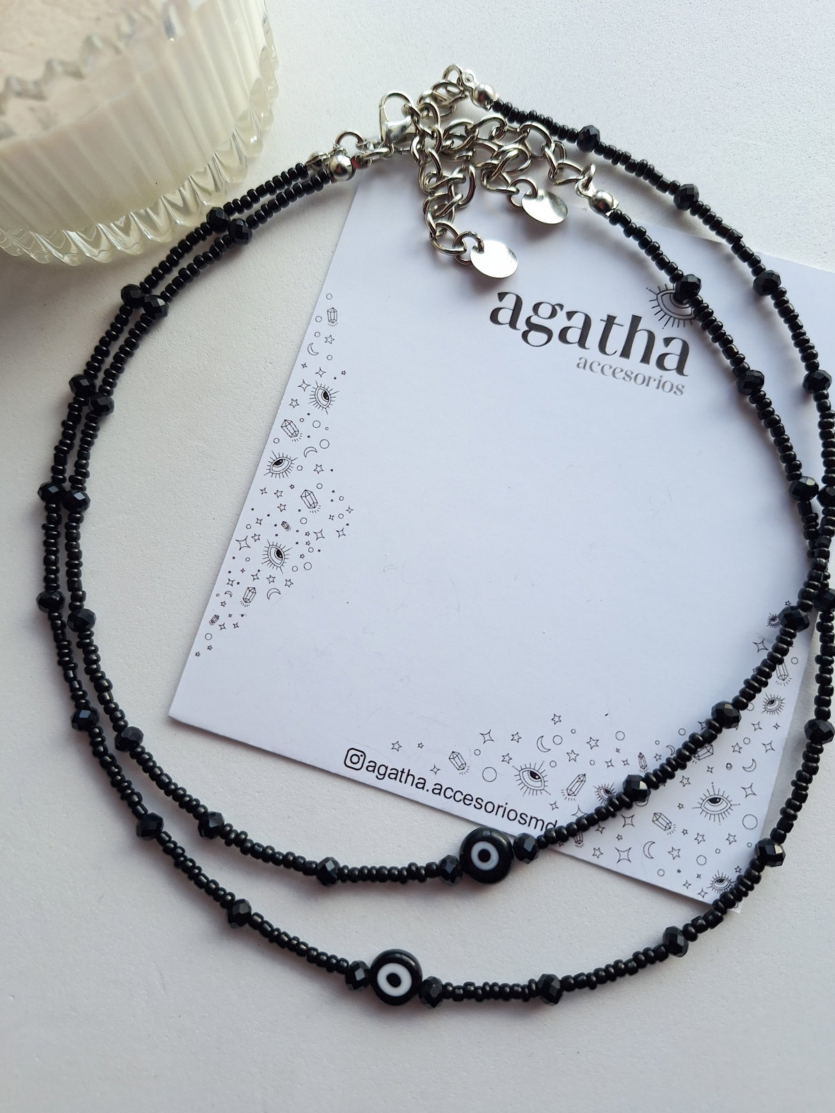 - Chocker realizado con mostacillas y cristales con ojito tde vidrio. Mide 35 cm con cadena de alargue de 5 cm. Cierre con mosquetón.
