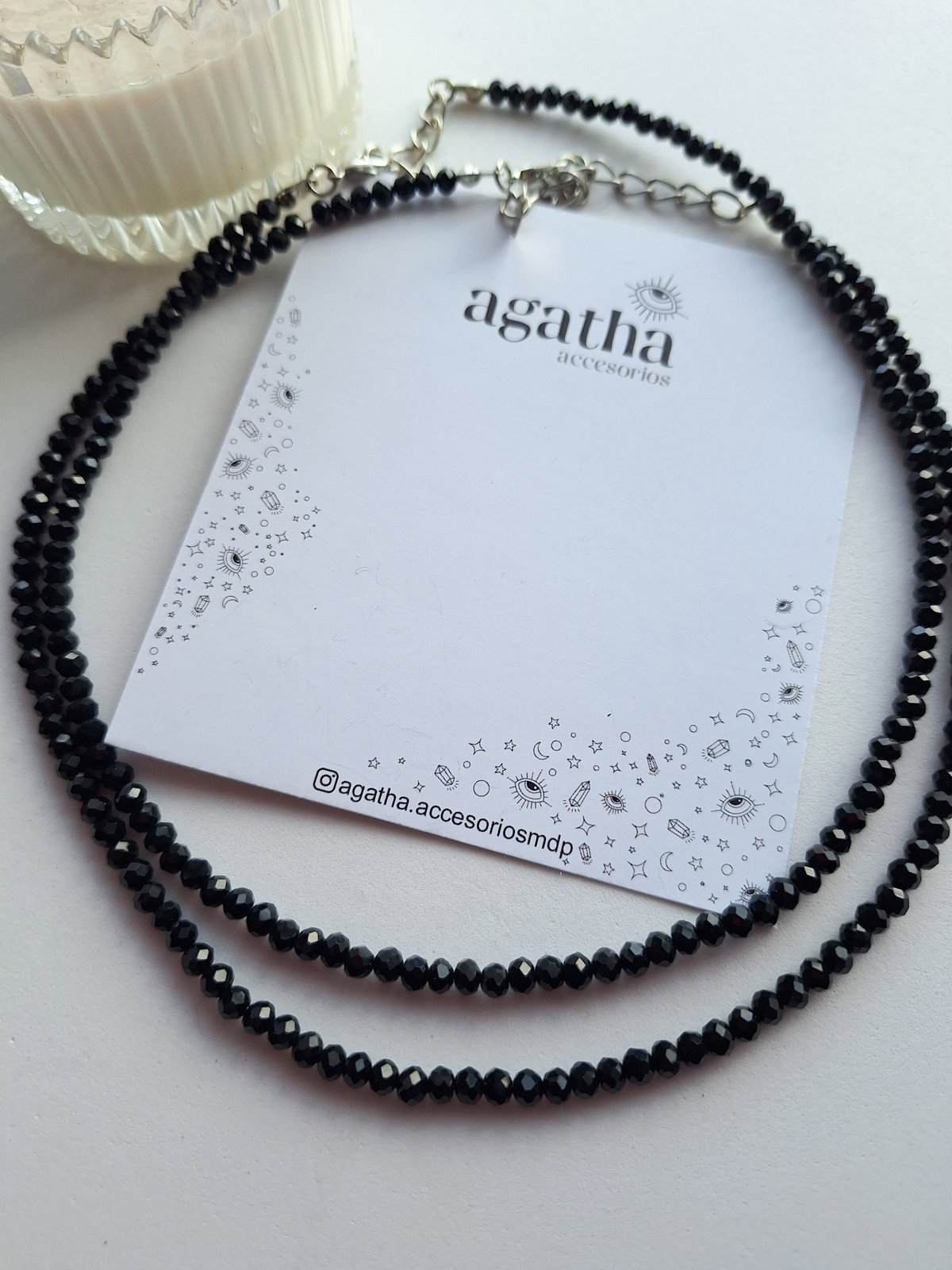 Chocker realizado con cristales de 4 mm. Mide 36 cm con cadena de alargue de 5 cm. Cierre con mosquetón.