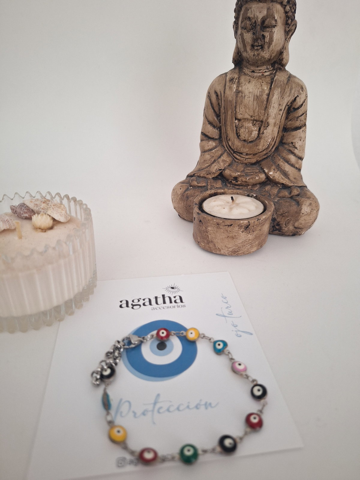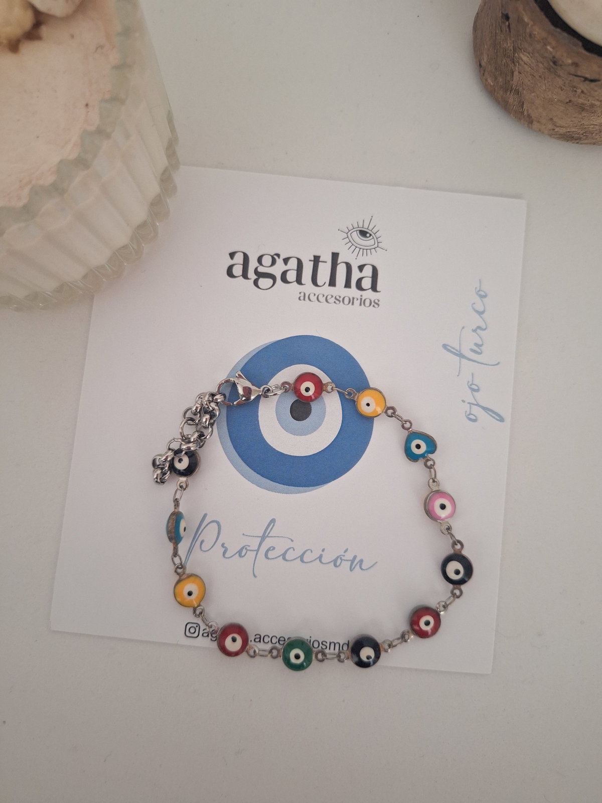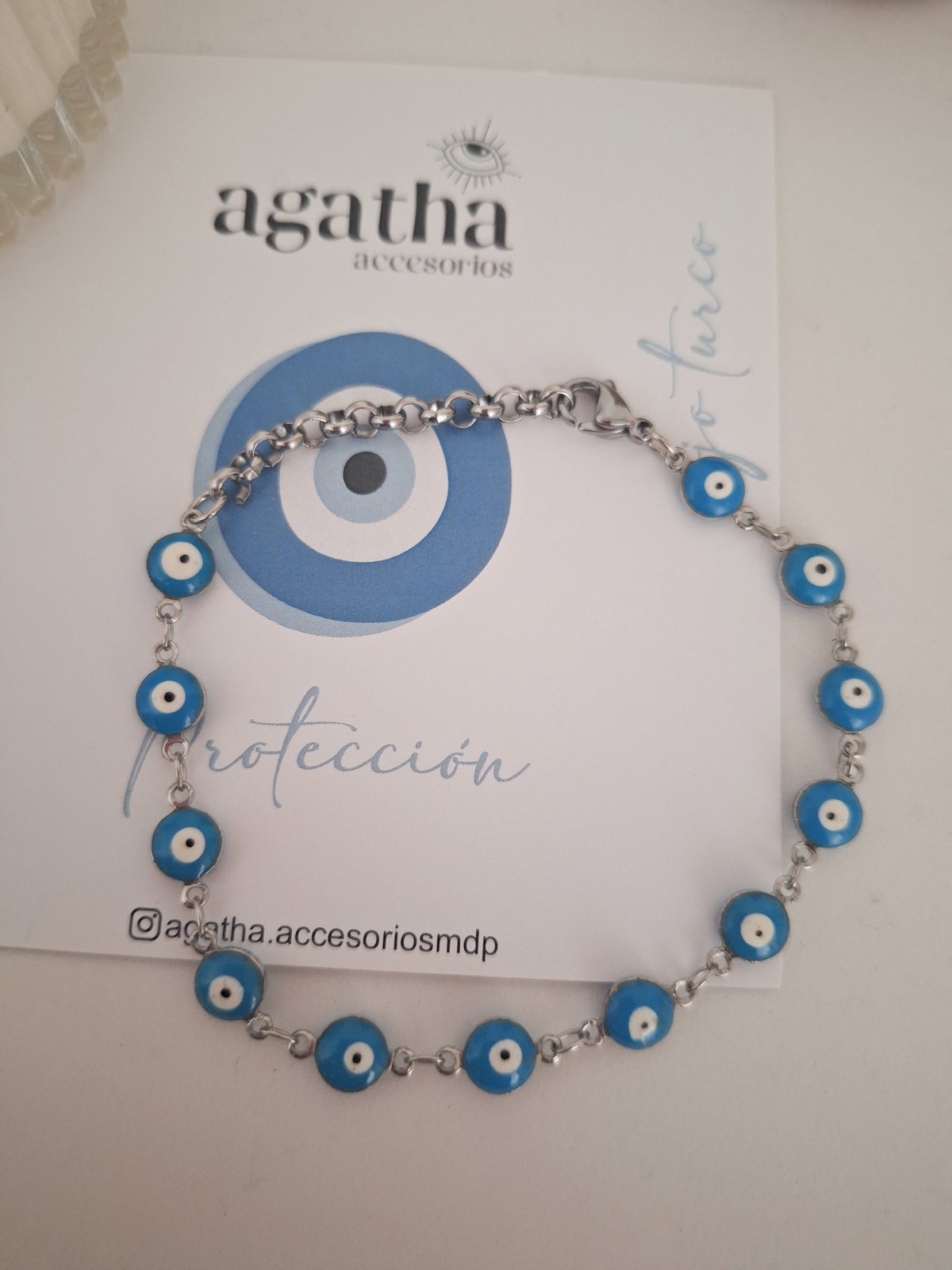 Pulsera con ojitos turcos, con terminaciones de acero quirúrgico.